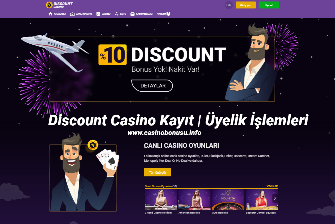 Türkiye’nin ilk ve tek kaybettirmeyen canlı casino sitesi Discount Casino kazandırmaya devam ediyor. Casino oyunlarında kayıplarını anında nakit iade almak istiyorsan, hemen Discount Casino Kayıt | Üyelik İşlemlerini tamamla. Sitenin güncel giriş adresi www.DiscountCasino42.com oldu.